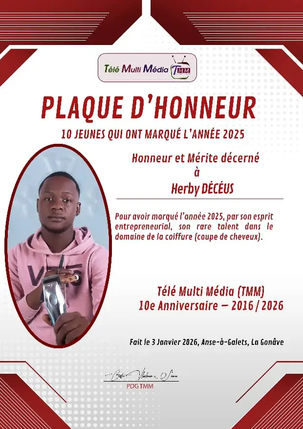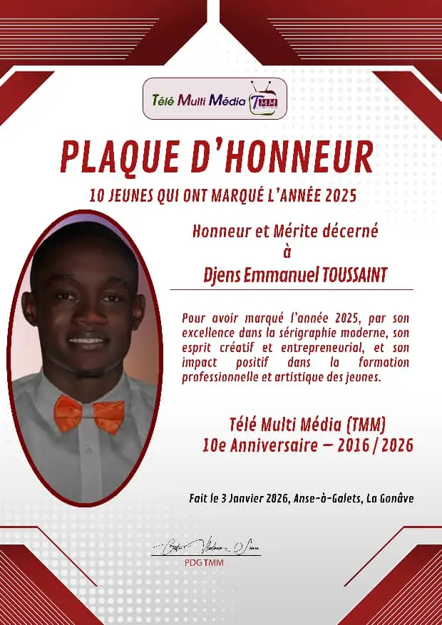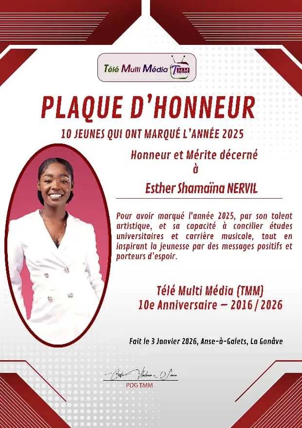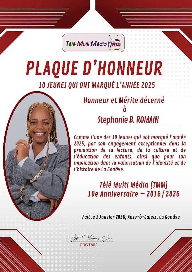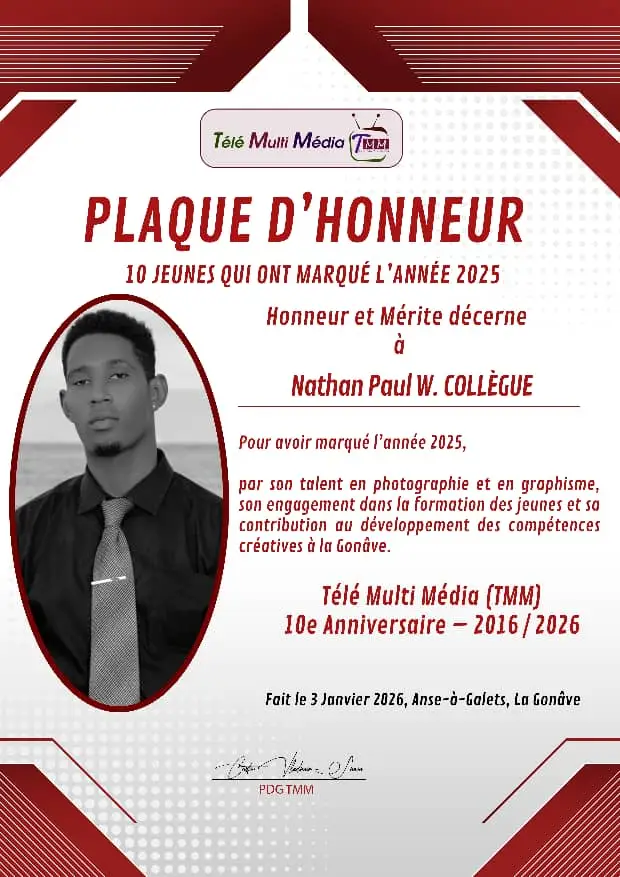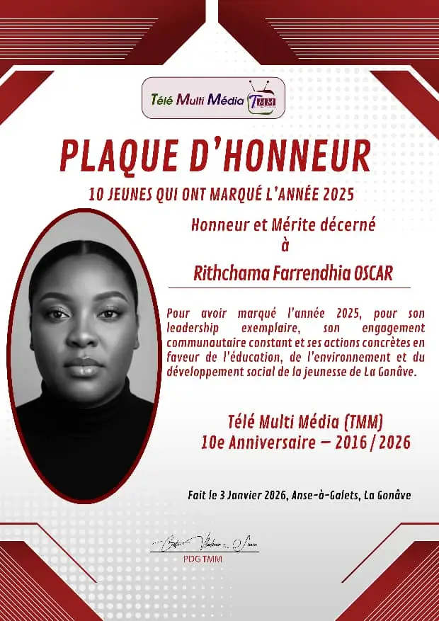 TMM (TELE MILTI MEDYA ) nan travay pou mete valè sou ansanm pèsonalite k ap travay sou zile deside onore 10 jèn fanm kou gason ki te fe yon travay pozitif nan kominote Gonavyèn nan pou lane 2025 la , se sila ki bay tout yo menm , pran tout ris pou montre manlgre tou anpil bagay posib andan zile a .